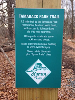 ![]() | Overview: Tamarack Park Trail connects Byram Township's greenways, established trails, and community focal points. The trail extends from Route 206 at Tamarack Park to C. O. Johnson Park at Roseville Road. Terrain varies; a spur trail leads to Johnson Lake (seen from Tamarack Road, this spur looks like a paved driveway). DetailsLength: 1.6 miles | ||||||||||||||