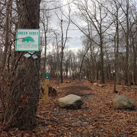 Trail and Area Description: Tamarack Park is a newly established park, with an anticipated opening of May, 2017. Until the park officially opens, hikers are welcome to hike this trail in reverse. Written directions provided above will guide visitors to the trailhead at the end of the trail. This is an easy-to-moderate hike. Much of the trail is relatively flat; the terrain varies in difficulty. The trail begins at Tamarack Park off Route 206 and starts with a steep incline along rock surfaces. This section is marked by large glacial erratics and runs up and down a rocky slope which flattens out along the ridge. As the trail gets closer to Johnson Lake, the terrain flattens out. The trail ends on a smooth downhill slope leading to C.O. Johnson Park. There are two main parking areas for this trail, with C.O. Johnson Park having the most parking. The Tamarack Park Trail connects to one spur of the Cranberry Overlook Trail, to other trails in Allamuchy Mountain State Park and to the Sussex Branch Trail, both located across Route 206 from Jones Lane. Parking Areas at located at Tamarack Park Field (in the gravel parking lot) and at C.O. Johnson Park (trailhead is on the left).